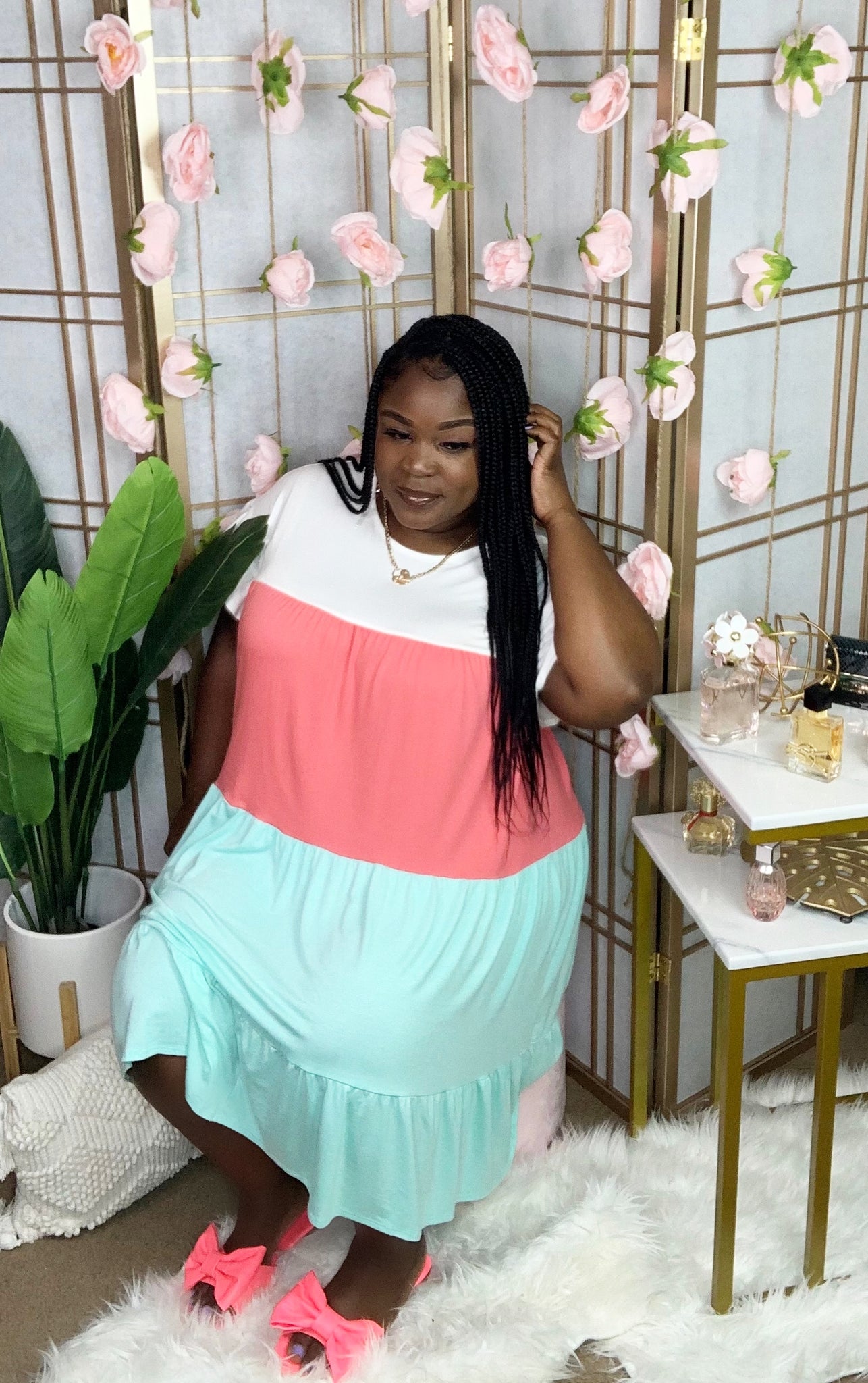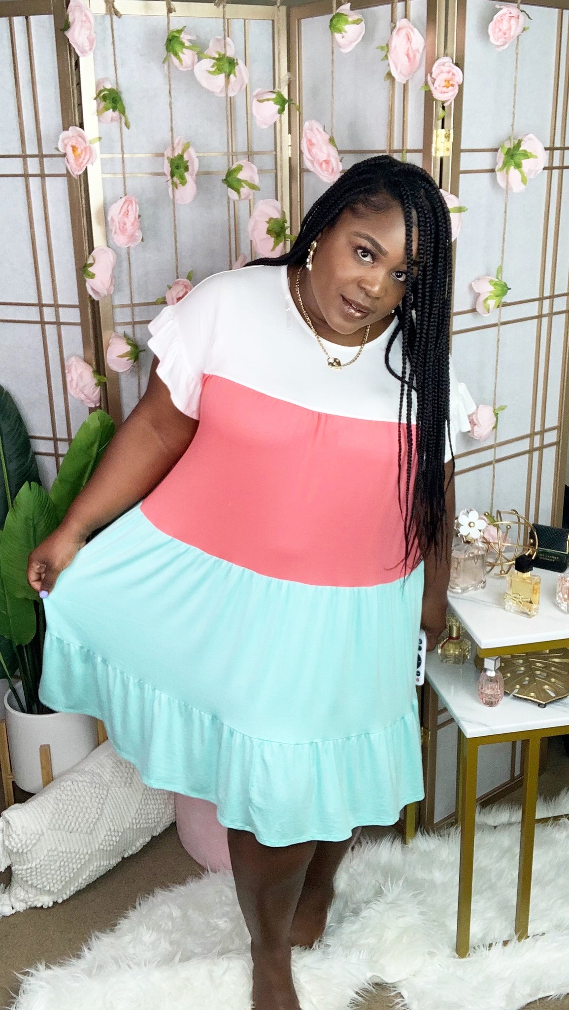 3 Tier mini dress with 3 beautiful colorblocks and who doesn’t love ruffled sleeves!