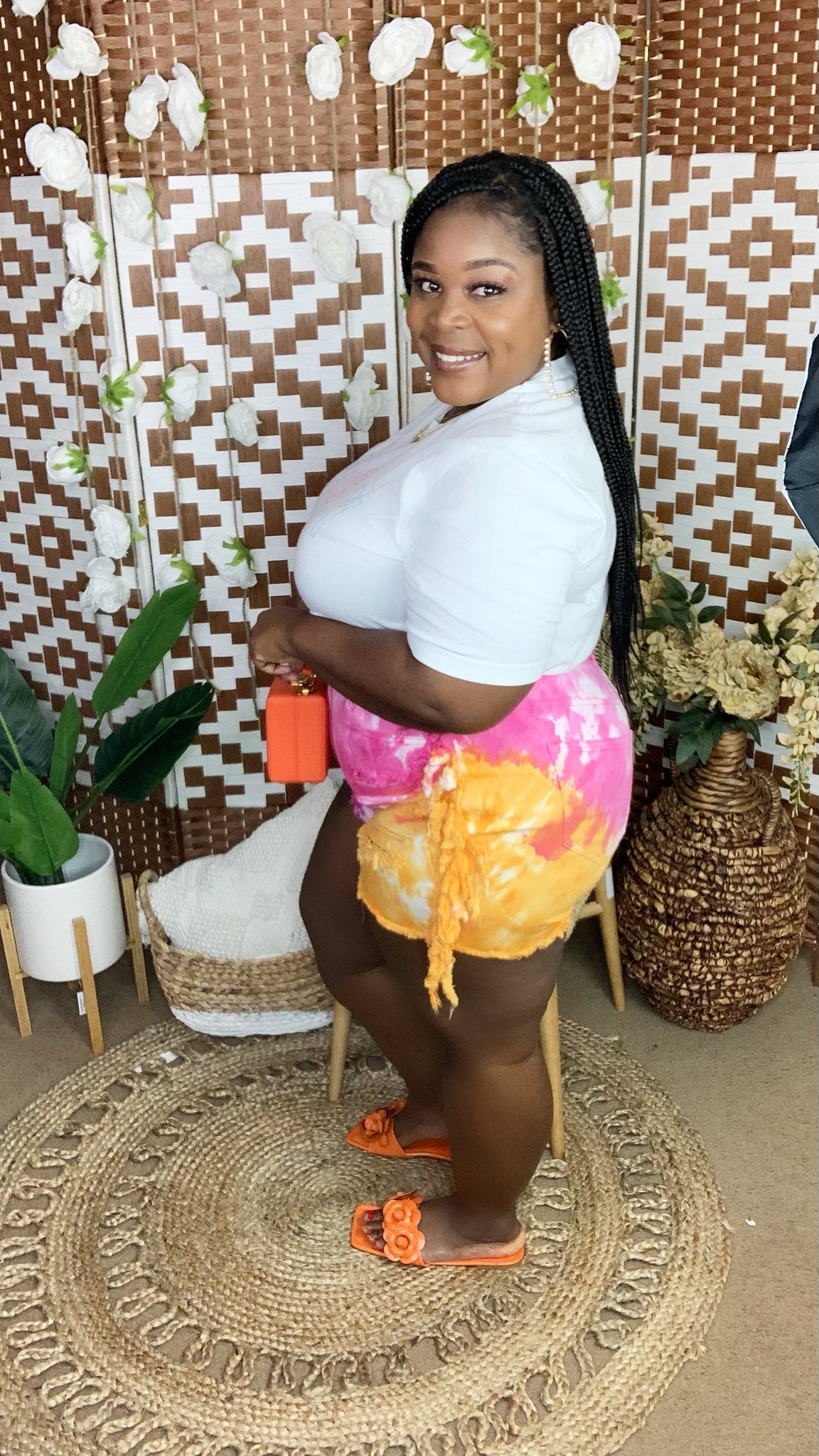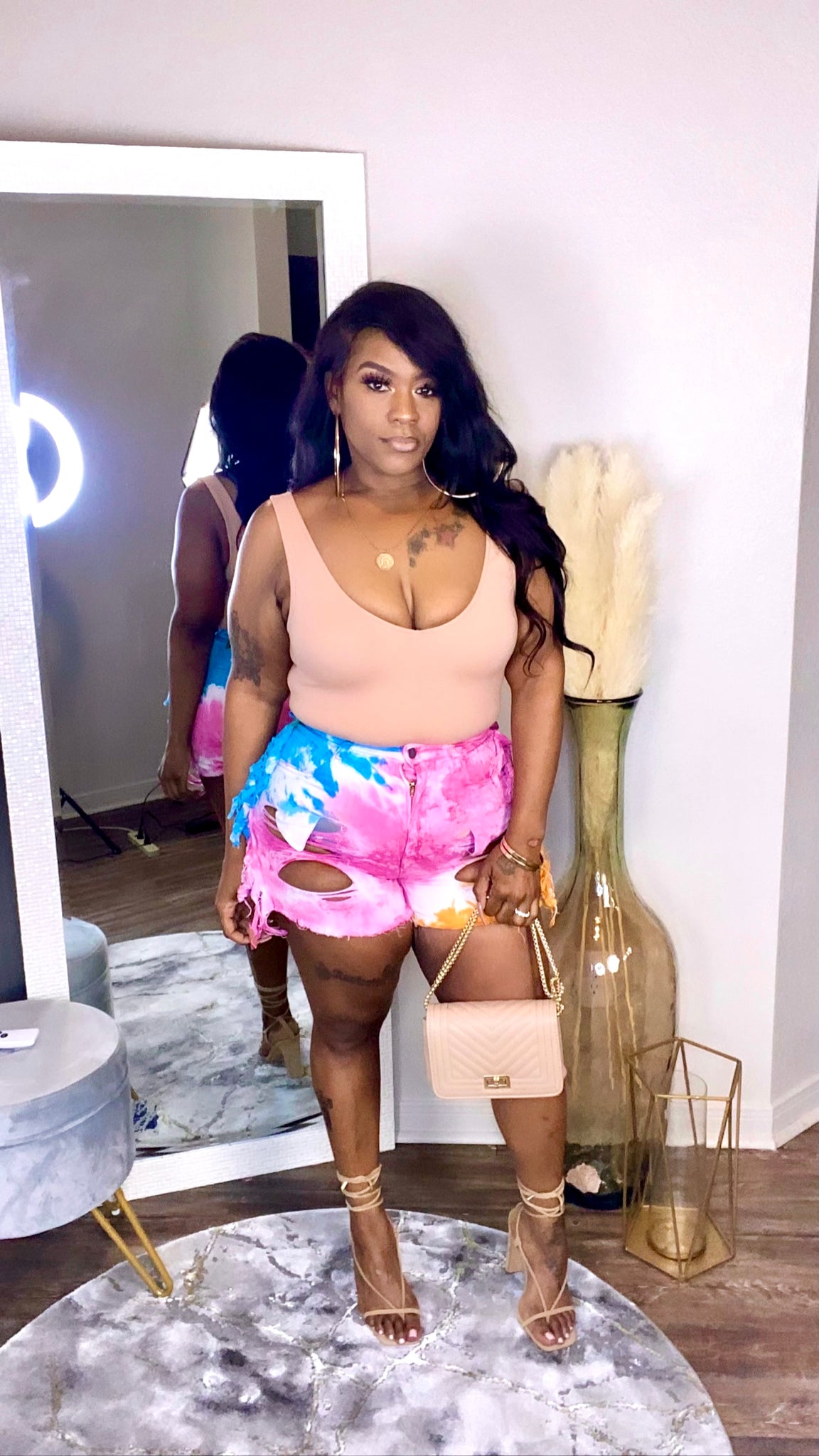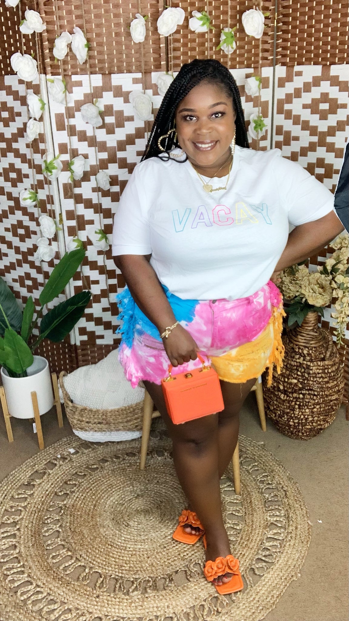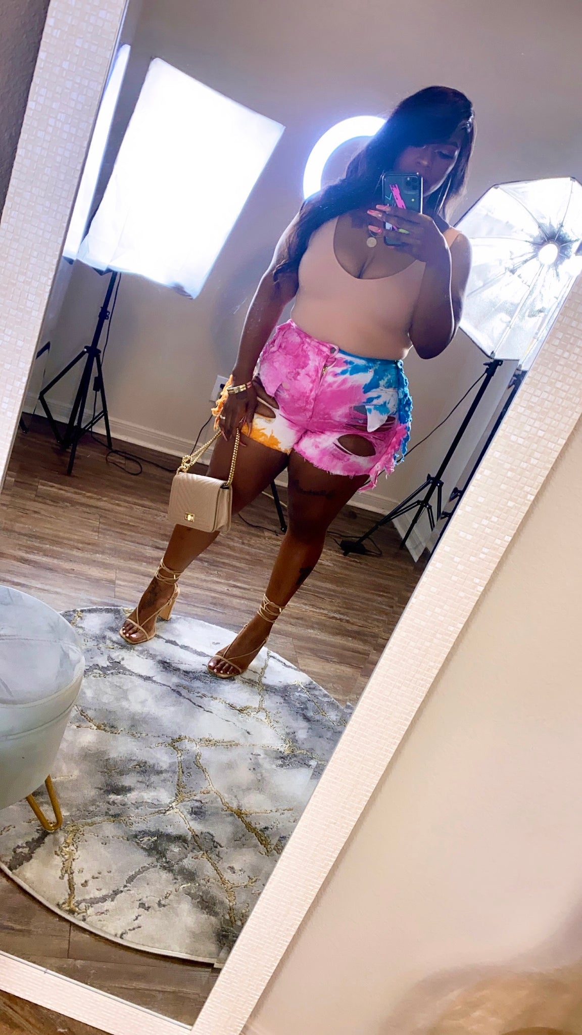High Rise Tie Dye Fringe Shorts
