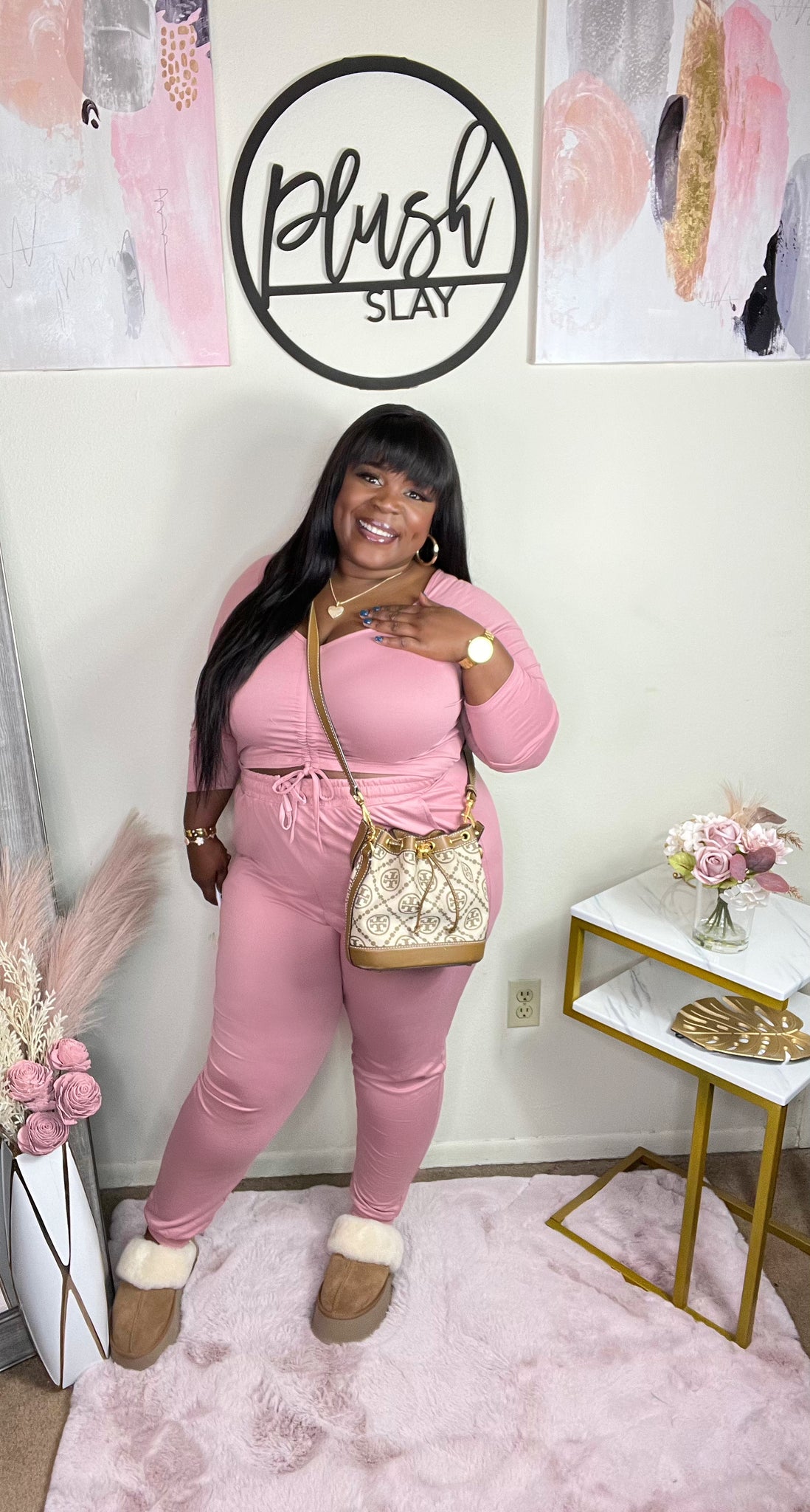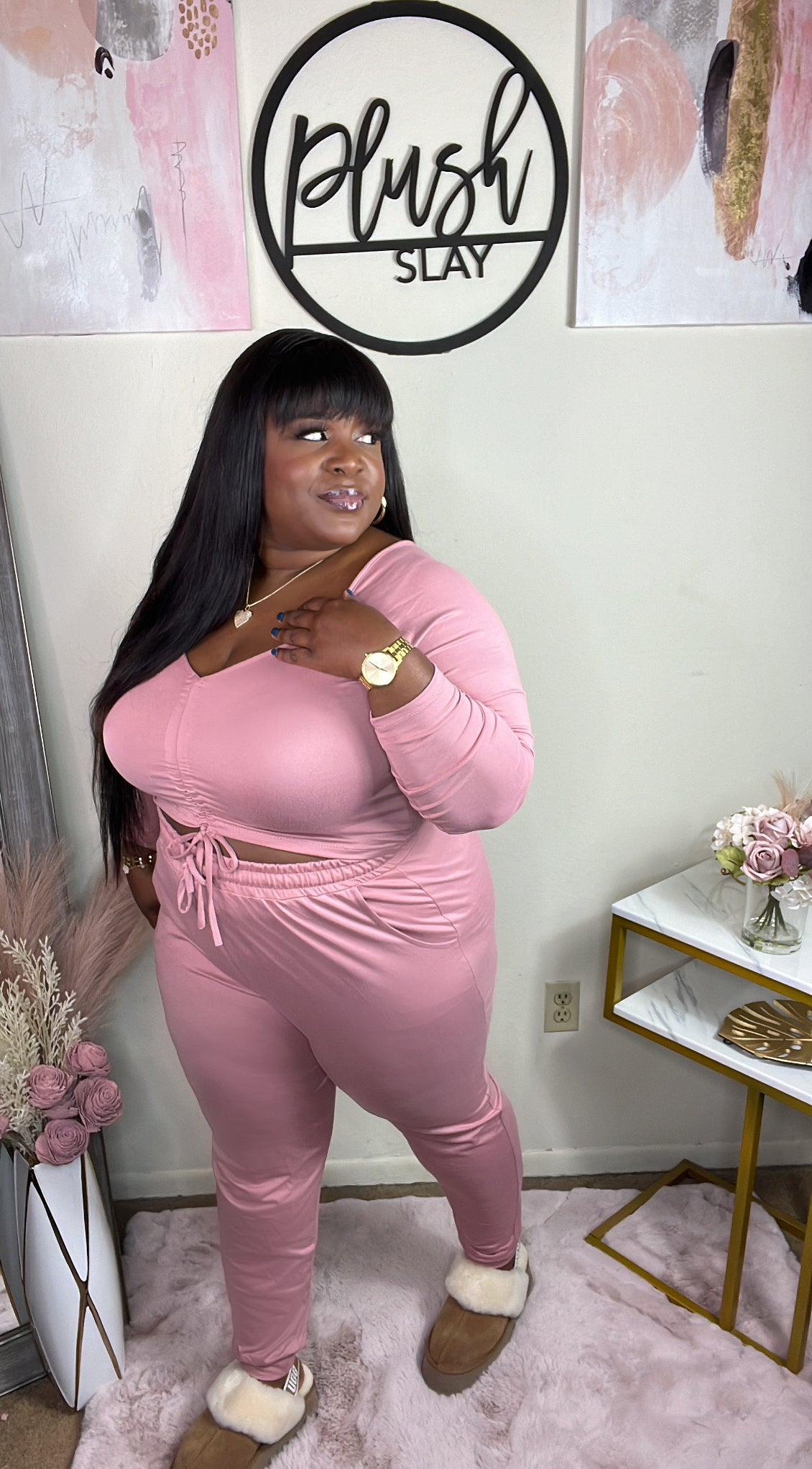 LONG SLEEVE RUCHED TOP AND JOGGER PANTS SET.