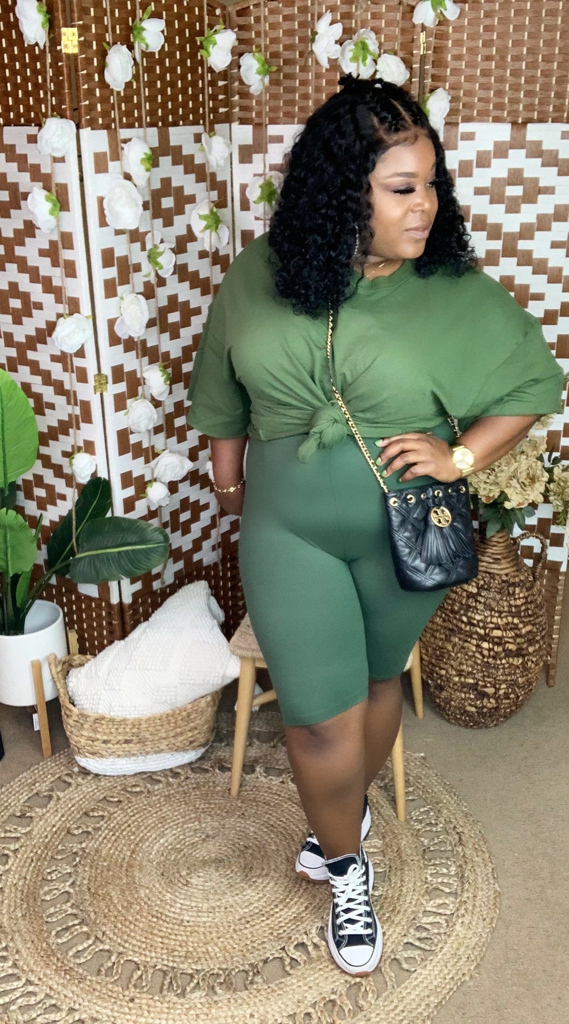 Plus French terry drop shoulder top with matching microfiber biker shorts