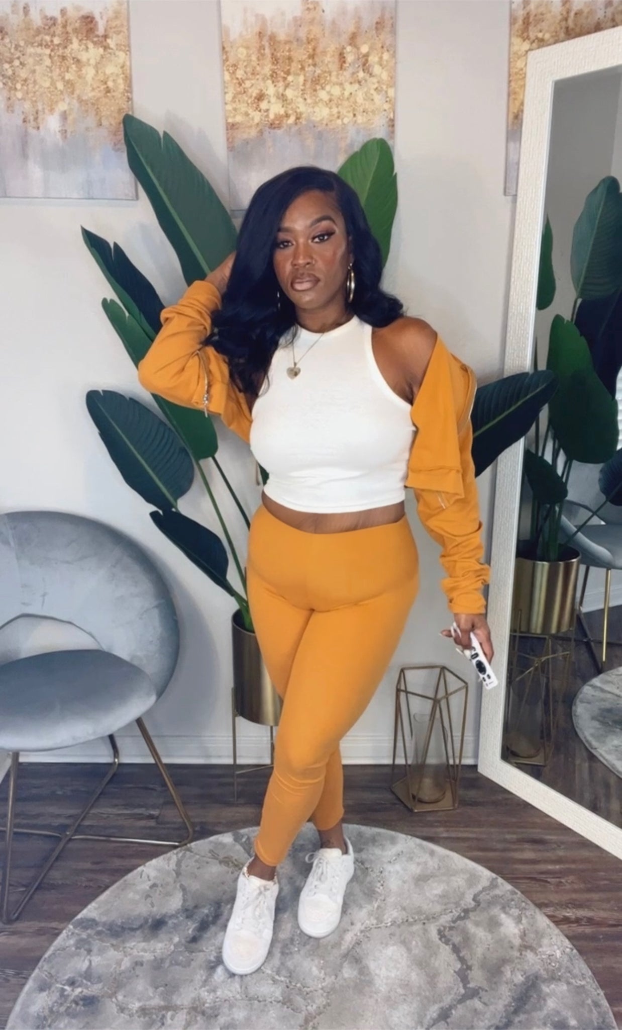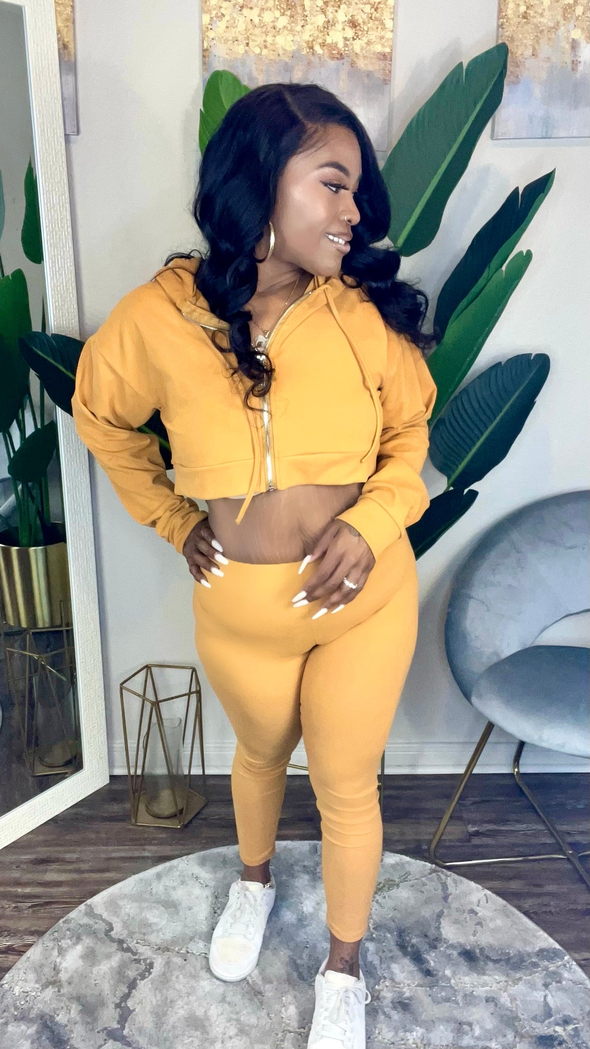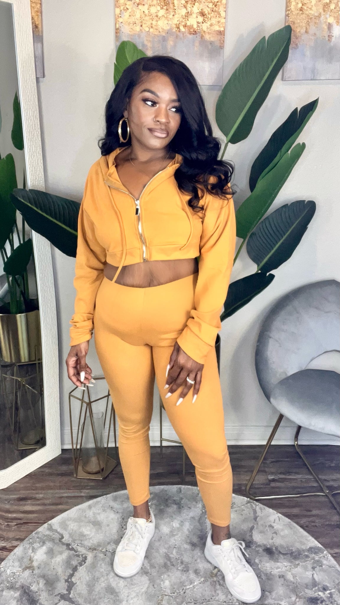 Cropped zip front hoodie with matching tights