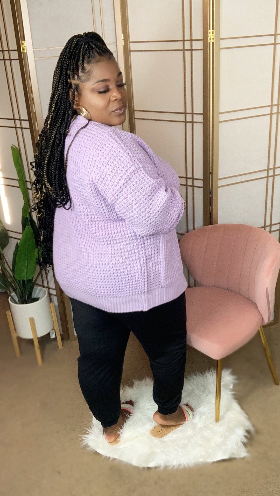 POP OF COLOR! WAFFLE CARDIGAN SWEATER WITH POCKETS